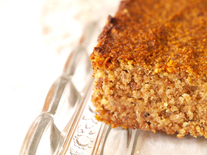 Bom, agora tenho de confessar que o meu objetivo inicial era fazer biscoitos, mas como a massa ficou com uma consistência mais líquida, untei uma forma (o ideal é usar papel vegetal também untado) e levei ao forno por 40 minutos a uma temperatura de 190ºC.