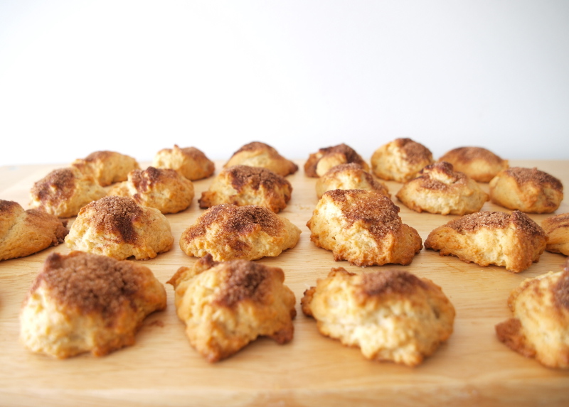 Polvilhar com o açúcar branco e a canela e levar a forno bem quente (220º) por 15 minutos. Gosto dos bolos pouco cozidos, por isso, os 15 minutos foram suficientes.